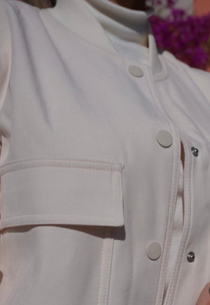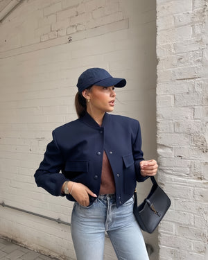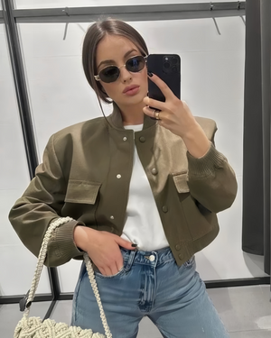 Con detalles cuidadosamente elaborados, como el cierre frontal y su cuello alto, esta chaqueta añade un toque de sofisticación a tu look casual. Combínala con tus jeans favoritos o sobre un vestido para un estilo más elegante.