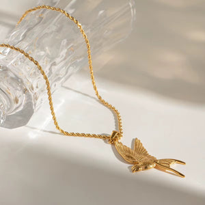El encanto de lo simbólico. Con un ave dorada como protagonista, el collar Cenit representa libertad y conexión con lo alto. Ideal para looks bohemios o como amuleto cargado de significado.