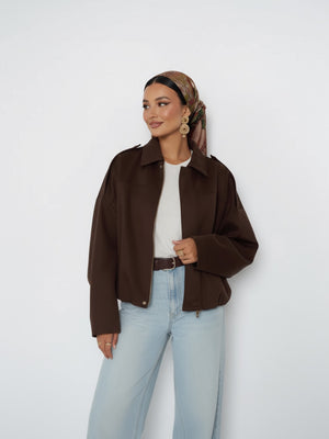 La Chaqueta Lúmina es una prenda atemporal que eleva cualquier look con un toque sofisticado y natural. Su silueta relajada y acabado tipo gamuza suave brindan comodidad y estilo, perfecta para acompañarte en climas templados o frescos.