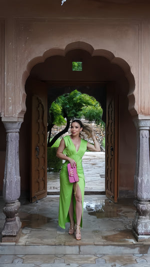 Vestido largo, recogido en cintura y espalda escotada, abertura baja. lúcelo fantástico en climas cálidos.